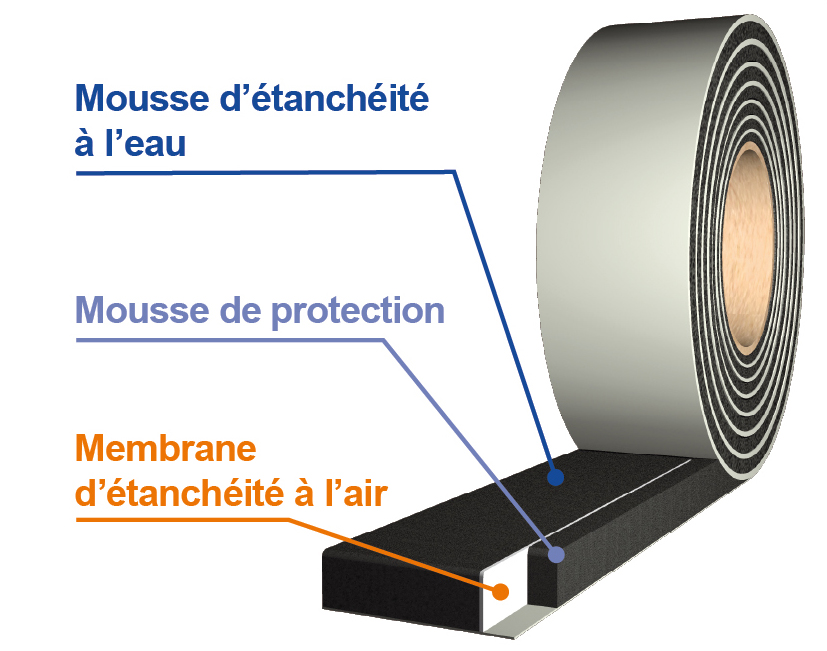 Joint d’étanchéité à l’eau et à l’air pour le calfeutrement des menuiseries extérieures, en neuf et rénovation.