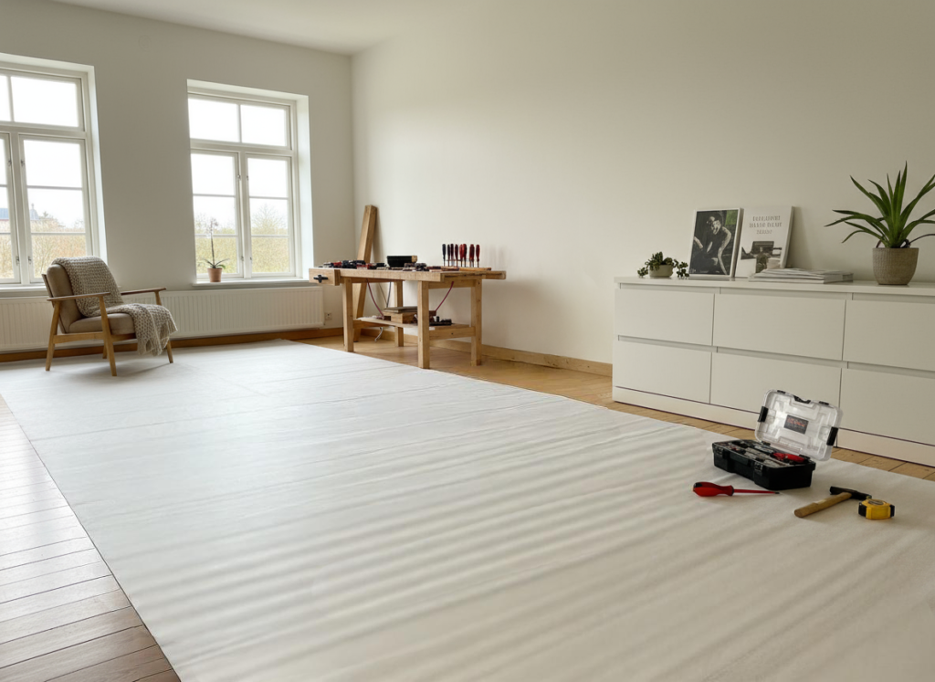Bâche de protection auto-adhésive étanche et respirante, protégeant les sols ou les marches d’escalier lors des interventions de rénovation et les travaux de bricolage.