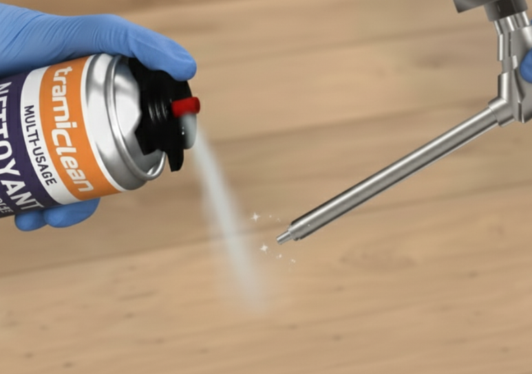 TRAMICLEAN peut être utilisé en spray manuel ou directement vissé sur le pistolet à mousse en aérosol.