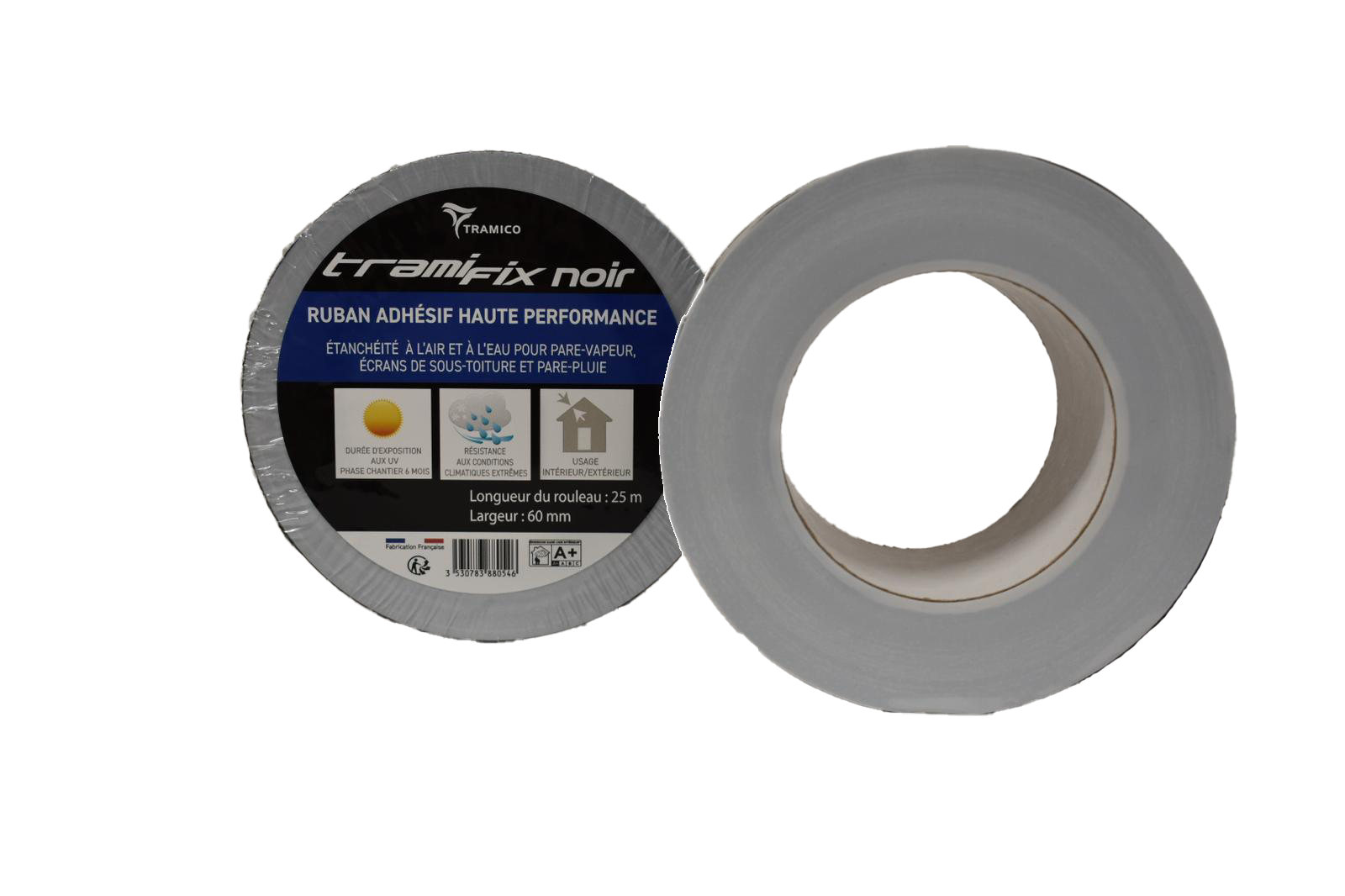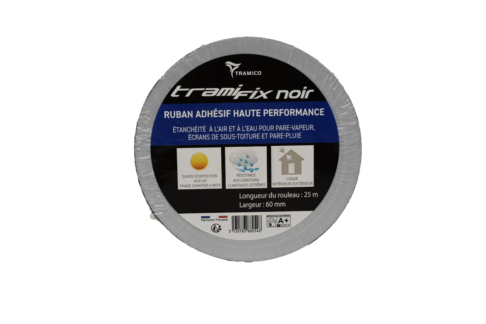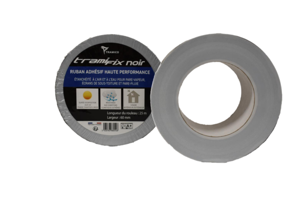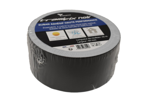 TRAMIFIX NOIR est composé d’un film noir très résistant aux UV et d’un adhésif haute performance. Il convient à l’assemblage étanche extérieur ou intérieur des écrans de sous-toiture et des pare-pluie.